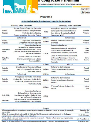 No tema Animais de Produção e Equinos, 29 e 30 de Setembro, os palestrantes convidados internacionais são os investigadores Patrick Pageat, presidente do European College of Veterinary Behavioural Medicine – Companion Animals e Isabelle Veissier, membro da comissão organizadora do projeto Welfare-Quality e do WelfareQuality Network.