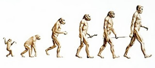 A evolução humana, representada como um percurso linear dos “macacos” até ao Homem