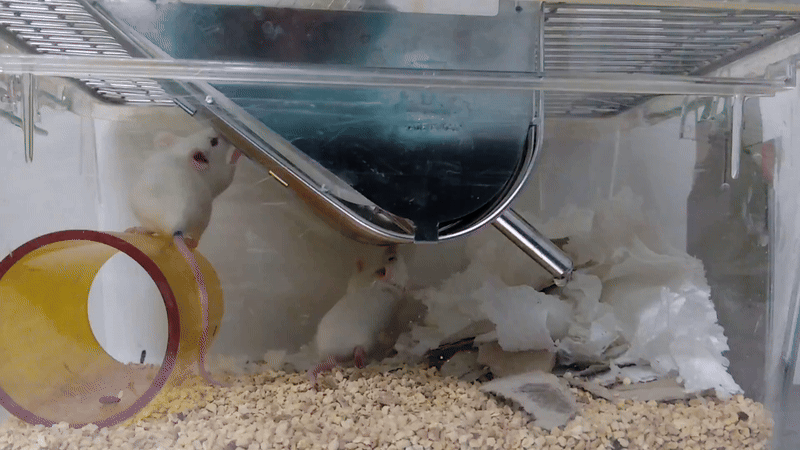 Utilizando gravações de vídeo, pudemos determinar que muitas das crias já morreram e foram comidos pelos progenitores antes do seu nascimento ser detetado pelos tratadores, o que dificulta o reconhecimento do problema (Brajon et al 2021). Ao nascer duma progenitora mais velha, e numa caixa onde já existe uma ninhada mais velha, aumenta o risco de um ratinho recém-nascido morrer, enquanto um microambiente mais acolhedor aumenta a probabilidade de sobreviver (Morello et al 2024).