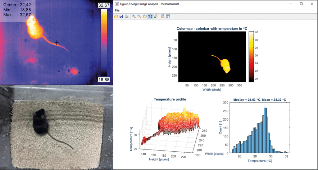 Aplicando este software, revelamos como o manuseamento dos murganhos desencadeia uma resposta hipertérmica (acompanhada de uma resposta contrária na cauda) de forma não-invasiva, e que esta persiste ainda que os animais sejam manuseados diariamente. Isto tem implicações directas para a investigação: quanto mais automáticas, remotas e sem contacto forem as medições, mais fiáveis serão os dados e menor será o impacto sobre os animais.