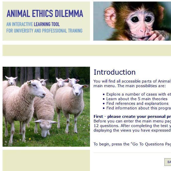 O Animal Ethics Dilemma é uma excelente ferramenta multilingue on-line para o ensino e aprendizagem da ética animal. Pode ser usado para auto-avaliação de posições individuais face às diferentes correntes filosóficas relativas a este tema. Indispensável a todos aqueles com interesse na área da ética e bem-estar animal.