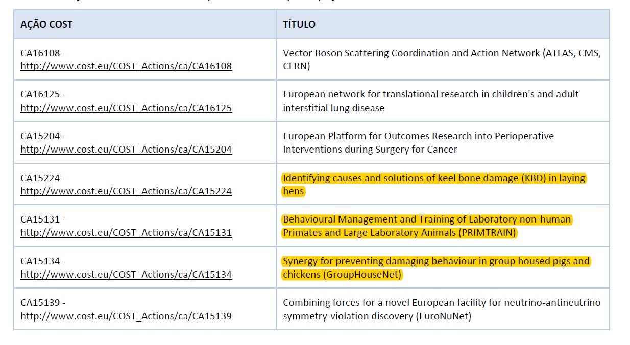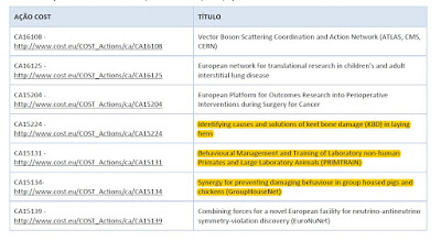 Bem, o ponto de interrogação é um eufemismo diplomático, realmente acho que deveria ser um ponto de exclamação. Pode ser justo questionar se a minha opinião não é tendenciosa pelo facto de eu ser investigadora da área em Portugal e gostar de ter mais colegas. Mas posso apoiar a minha posição em dados concretos. Hoje recebi da FCT uma lista das ações COST em que falta membros portugueses – e 3 de um total de 7 são de tópicos que claramente pertencem a área de bem-estar animal.