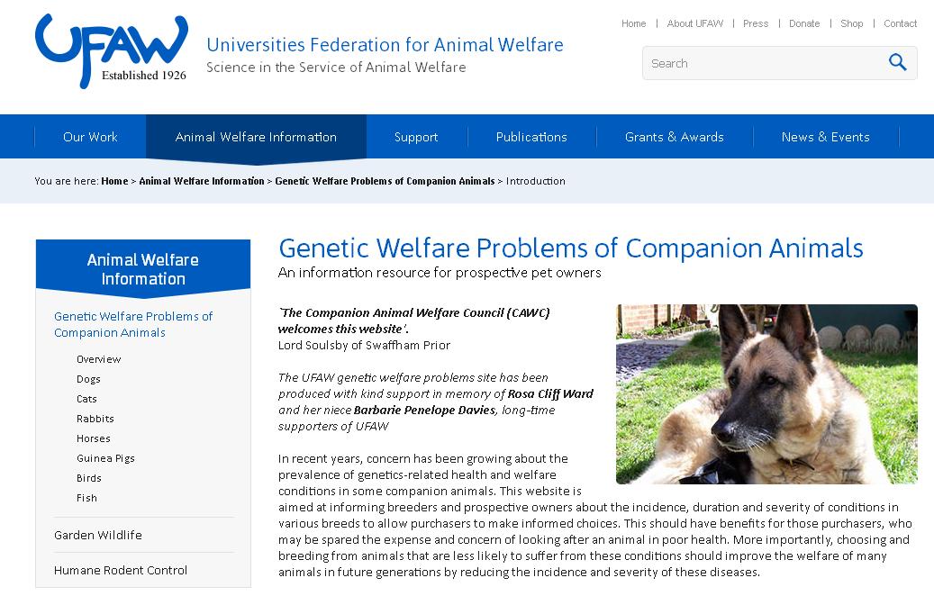 A UFAW – Universities Federation for Animal Welfare tem um website que ajuda com esta informação: Genetic Welfare Problems of Companion Animals. Aqui, quem está a pensar em comprar um animal de companhia pode confirmar se a raça do animal está associada a alguns problemas geneticamente determinados. Neste caso, fica a saber como assegurar que o seu animal não seja portador da condição em questão.