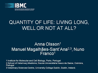 Na nossa apresentação abordamos o dilema de quantidade e qualidade de vida, com base em três exemplos: a (redução em) longevidade da vaca leiteira, as formas de criar vitelos machos de raças de produção de leite e a tensão entre redução e refinamento na experimentação animal. O trabalho resulta do desafio que aceitamos em 2013, de contribuir para o livro Dilemmas in Animal Welfare (CABI Publishing, 2014).
