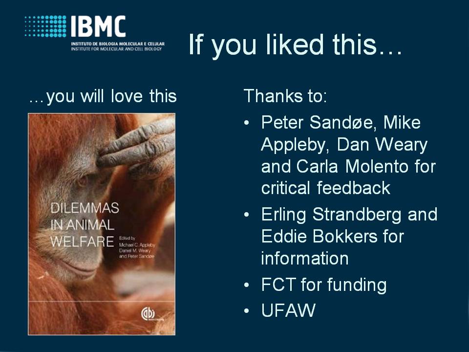 Desde o primeiro em que participei (2001, em Londres), considero os congressos de UFAW uma prioridade profissional por vários motivos. São sempre excelentes, focando um tema com relevância e pertinência, com palestrantes de renome internacional. São inspiradores, tanto pela qualidade das palestras como pela diversidade da participação. Aqui encontra-se não só académicos, mas pessoas de todo o tipo de organismos governamentais e não-governamentais na área de bem-estar animal. Quem quer saber mais concretamente do que foi falado no congresso, encontra um relato no Twitter do UFAW.
